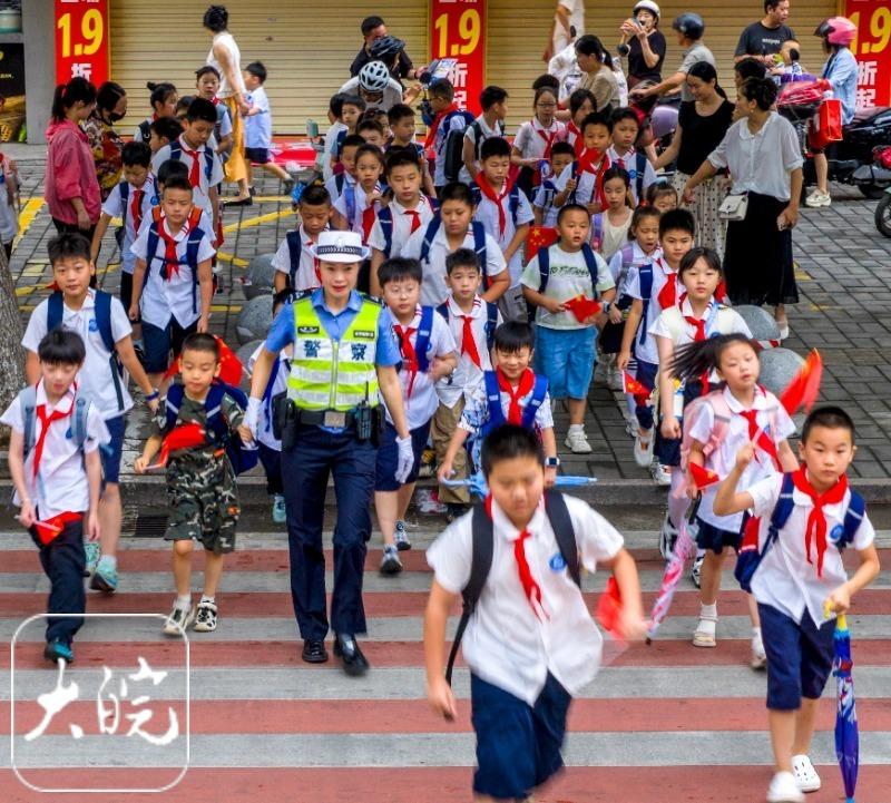 当日,是新学年正式开学的第一天。庐江县公安局交管大队自2011年成立女子“护学岗”以来,已经温暖护学15年。开学期间,“警花”们每天都在学校周边交通疏导,提醒学生注意交通安全,护送学生安全通过斑马线,平安到校上课。