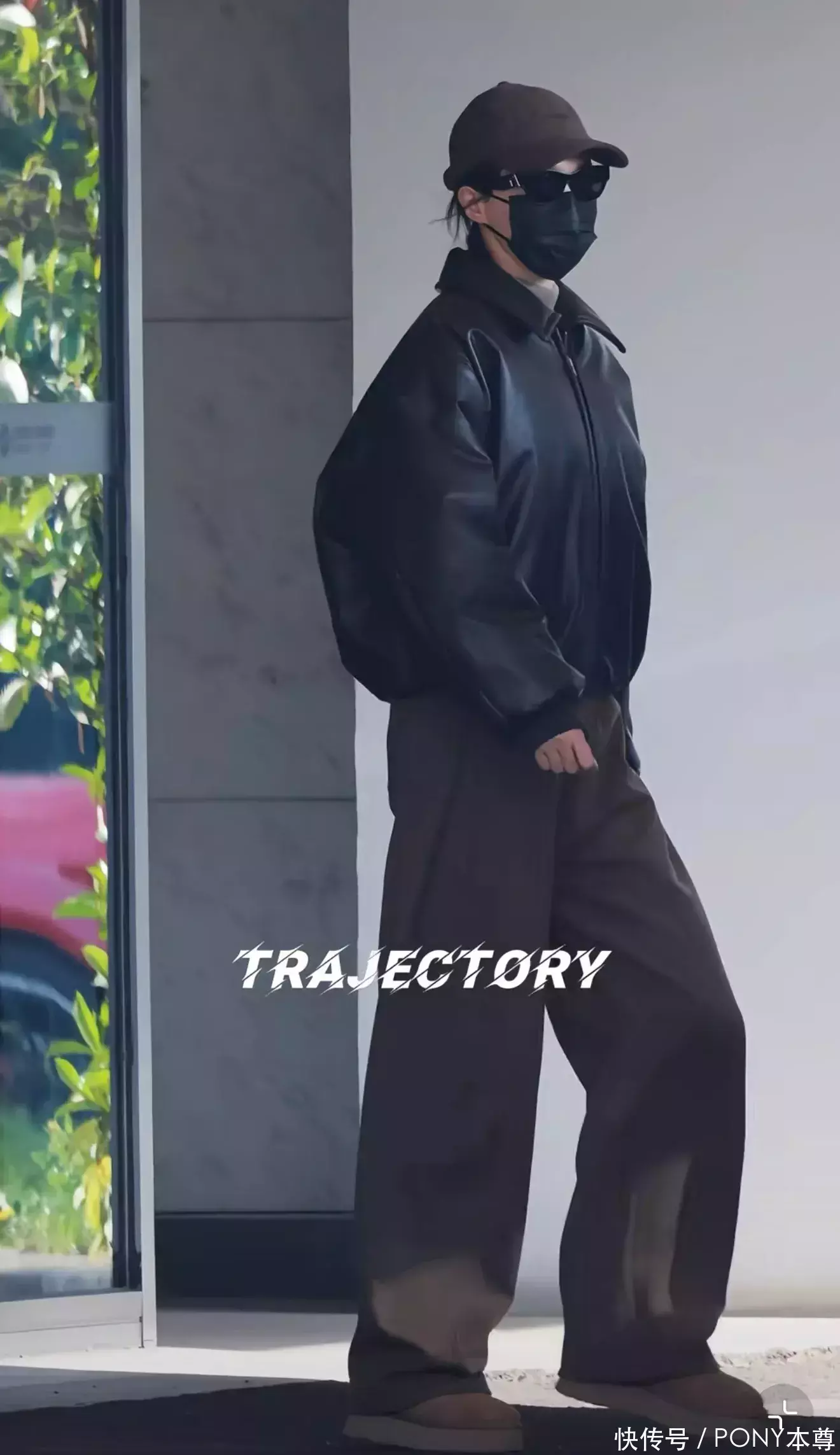 短款皮衣如何搭配更兼顾美观与实用性呢?通常来讲,搭配同色系阔腿裤!不过唐嫣这样,搭配棕色系阔腿裤,也是非常有气质!尤其是和头上佩戴的棕色棒球帽搭配起来,穿出的效果利落,又自带高级感。